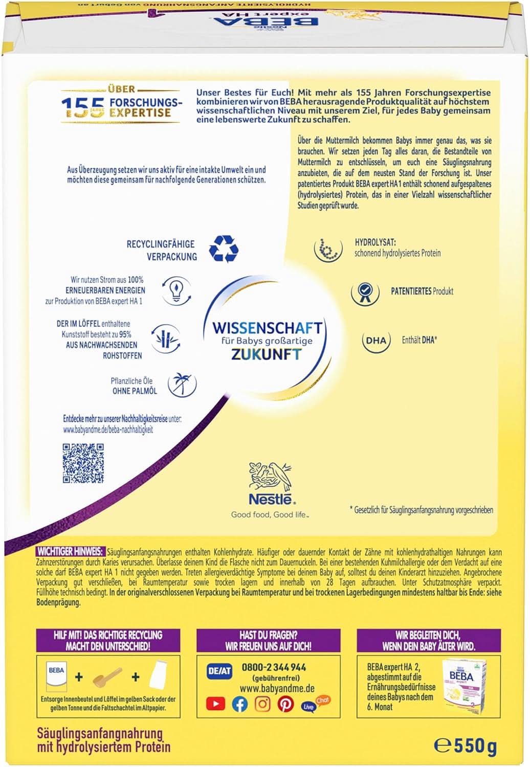 BEBA Expert HA 1 Hydrolysierte Anfangsnahrung, Säuglingsnahrung Von Geburt An, 6Er Pack (6 X 550G) Mama si Copilul Naty Shop Beba Expert Ha 1